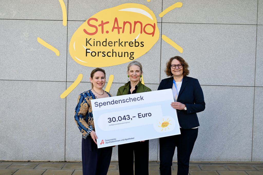 Im Rahmen des internationalen Monats gegen Kinderkrebs 2025 haben Österreichs Apotheken gemeinsam mit der Österreichischen Apothekerkammer über 30.000 Euro für die St. Anna Kinderkrebsforschung gesammelt. Ein Großteil der Summe stammt aus Spendenboxen in den Apotheken, ein weiterer Teil aus den Tombola-Erlösen des Balls der Pharmazie im Jänner 2026.