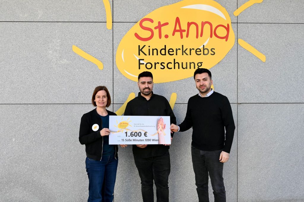 Am Freitag, den 13. Februar 2026, hat die Filiale 15 Süße Minuten in der Spitalgasse 33 etwas ganz Besonderes getan: 100 % des Tagesumsatzes wurden an die St. Anna Kinderkrebsforschung gespendet. Dank der großartigen Unterstützung der Kundinnen und Kunden kamen dabei 1.600 Euro zusammen, Ein wertvoller Beitrag für lebensrettende Forschung und für Kinder, die jeden Tag um ihre Zukunft kämpfen.