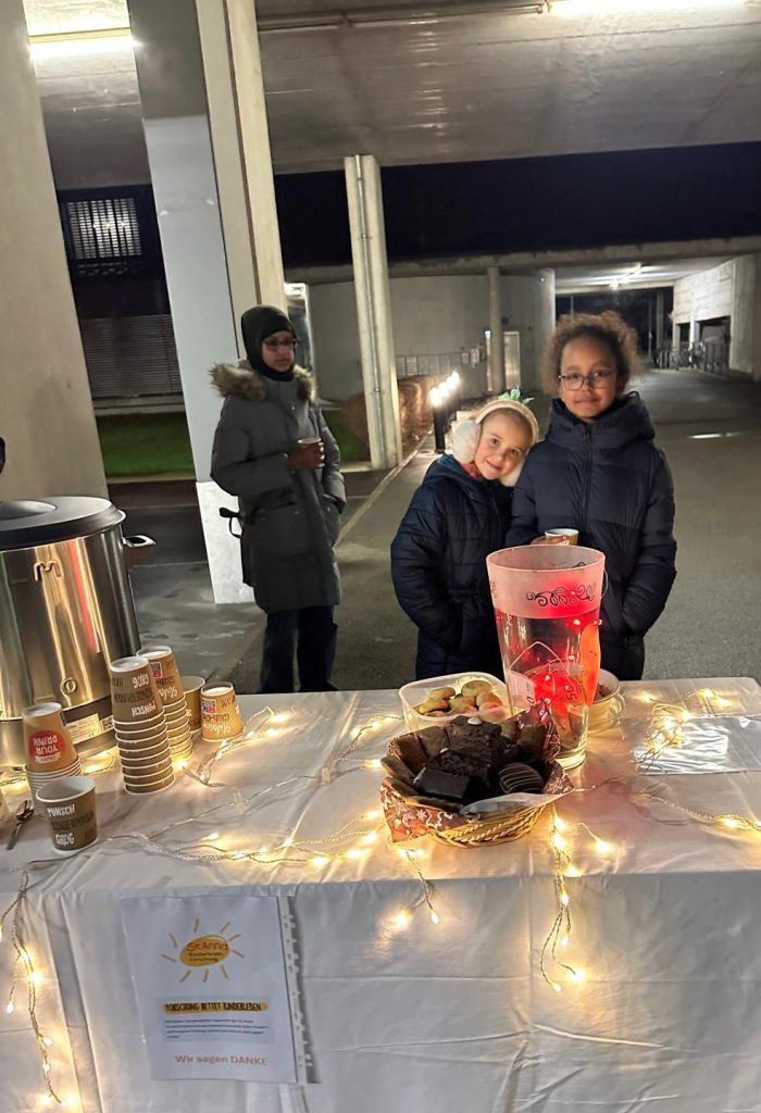 Mit viel Begeisterung hat Maya alles selbst geplant – von der Auswahl der Köstlichkeiten bis zum Flyer für die Nachbarschaft. Es gab Punsch, Würstel, selbstgemachte Mohnzelten, Rotweinlikör, Lebkuchen, sogar später Geselchtes mit Brot. Jeden Tag kamen neue Ideen dazu!